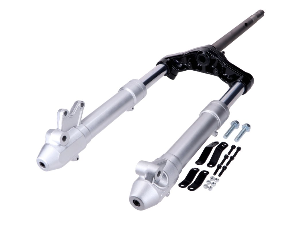 Etuhaarukka, sisältää molemmat iskunvaimentimet sekä T-kappaleen.