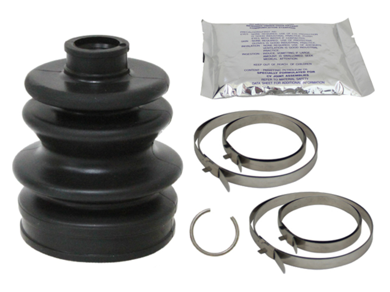 Pakkaus sisältää yhden suojakumin, kaksi ruostumattomasta teräksestä valmistettua kiristyspantaa sekä rasvapakkauksen.