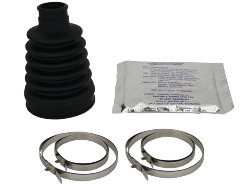 Pakkaus sisältää yhden suojakumin, kaksi ruostumattomasta teräksestä valmistettua kiristyspantaa sekä rasvapakkauksen.