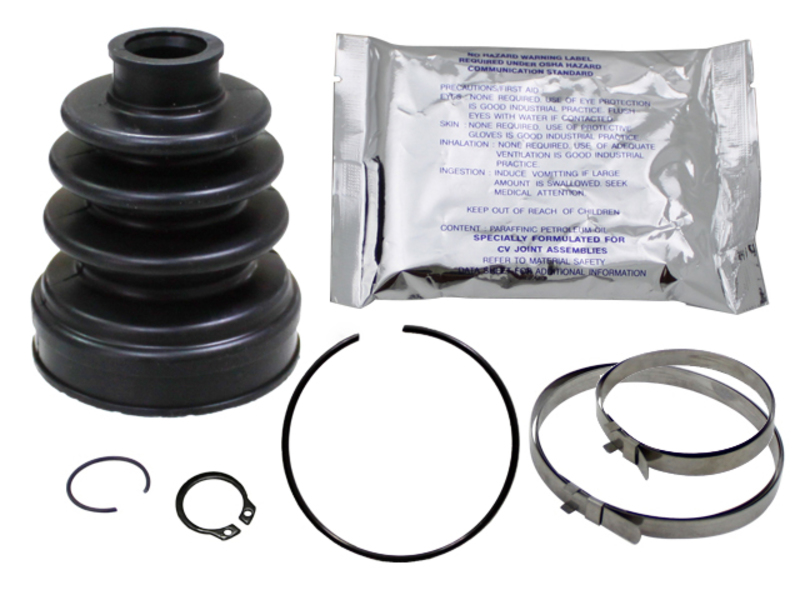Pakkaus sisältää yhden suojakumin, kaksi ruostumattomasta teräksestä valmistettua kiristyspantaa sekä rasvapakkauksen.