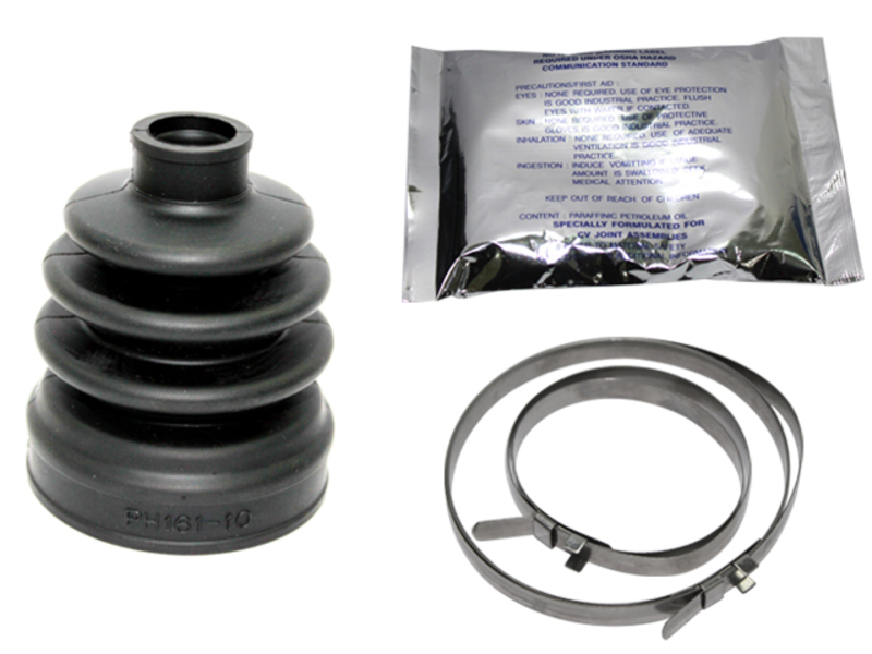 Pakkaus sisältää yhden suojakumin, kaksi ruostumattomasta teräksestä valmistettua kiristyspantaa sekä rasvapakkauksen.