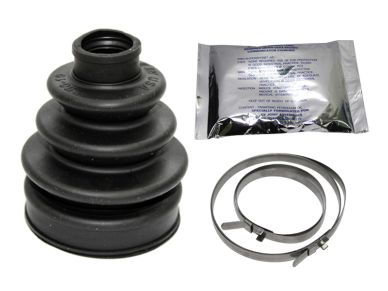 Pakkaus sisältää yhden suojakumin, kaksi ruostumattomasta teräksestä valmistettua kiristyspantaa sekä rasvapakkauksen.