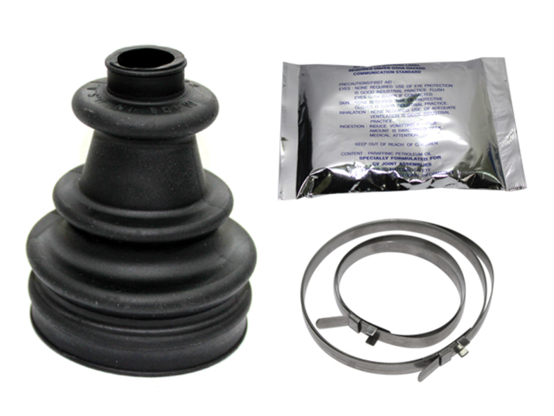 Pakkaus sisältää yhden suojakumin, kaksi ruostumattomasta teräksestä valmistettua kiristyspantaa sekä rasvapakkauksen.