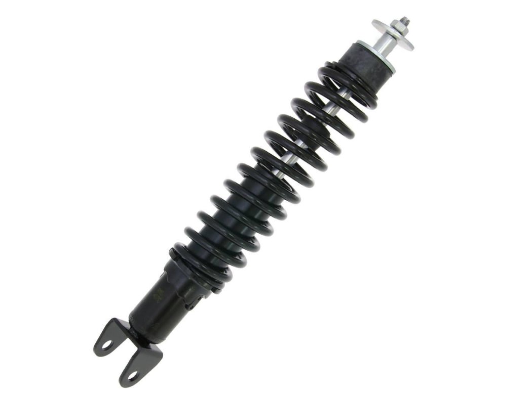 Takaiskunvaimennin 340mm, ulkojousella. Kiinnitys M8/10mm (ylhäällä M8 -kierre ja alhaalla haarukka). Haarukan sisäleveys 33mm.